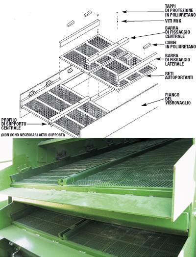 Il poliuretano autoportante viene fissato al telaio del vaglio mediante barre centrali e barre